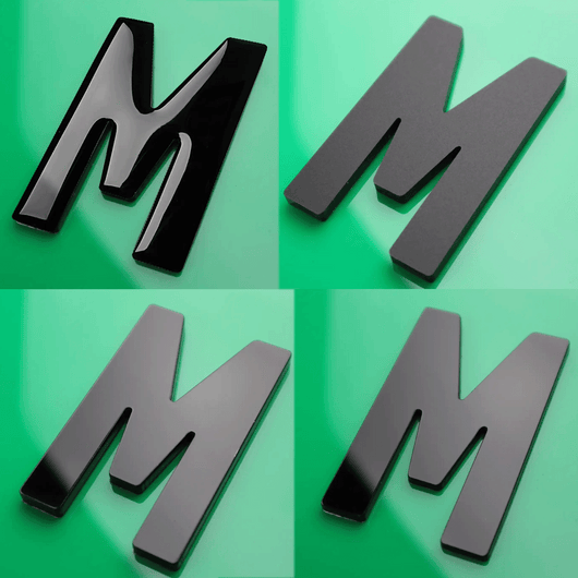 350 x 5mm Acrylic Matte Characters: A refined, non-reflective finish for distinctive 4D matte letters.